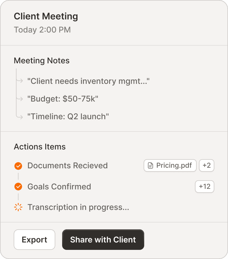 Meeting capture — Walk out of discovery with notes already organized