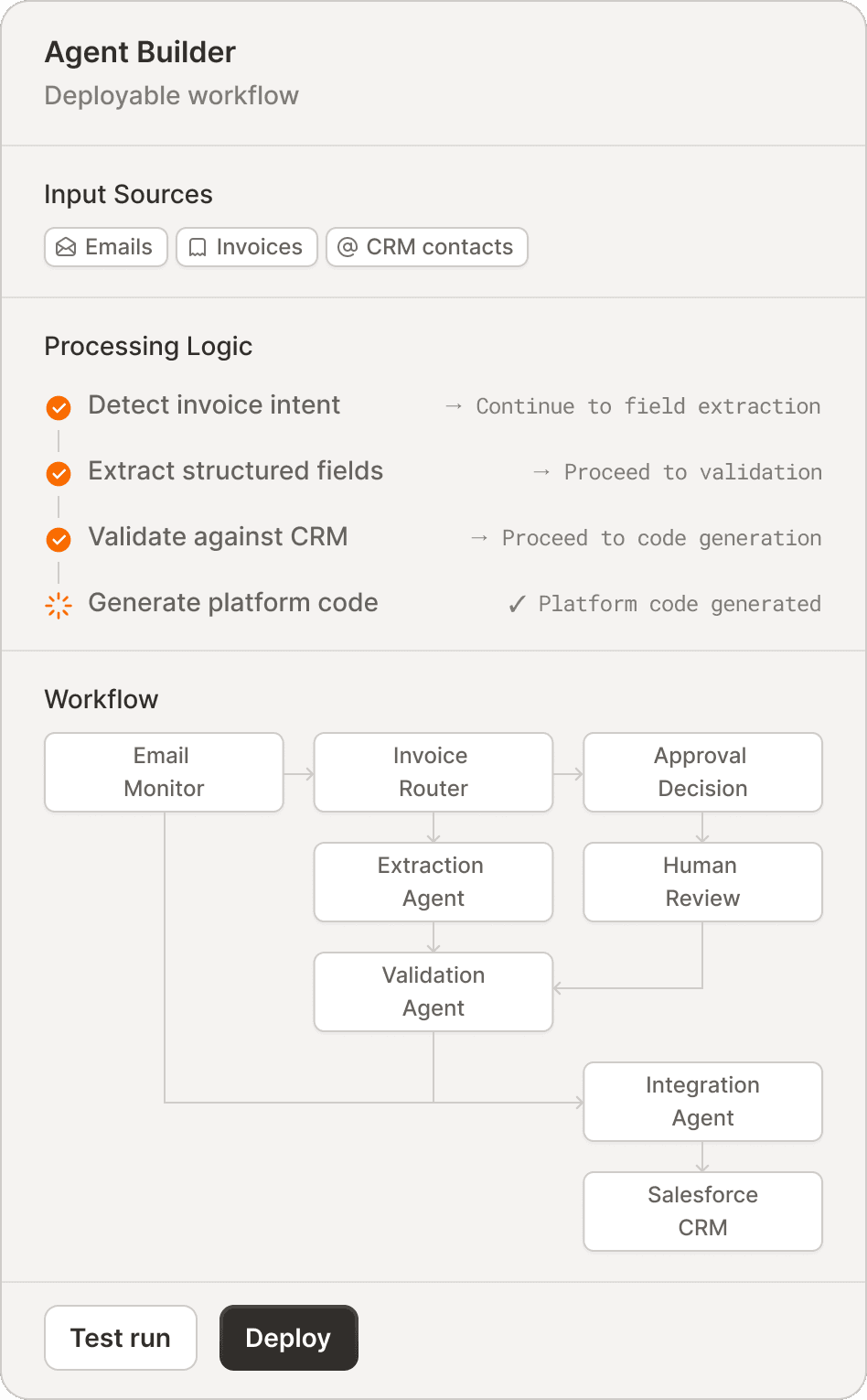 No platform lock-in — Deploy agents to LangGraph, N8n, Agent Core, wherever